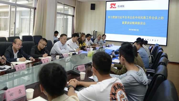9月17日,我校召開(kāi)學(xué)習(xí)貫徹習(xí)近平總書(shū)記在中央民族工作會(huì)議上的重要講話精神座談會(huì)。黨委書(shū)記張志昌出席會(huì)議并講話。黨委副書(shū)記彭虎軍主持會(huì)議。統(tǒng)戰(zhàn)部、學(xué)工部、團(tuán)委負(fù)責(zé)人,輔導(dǎo)員代表及少數(shù)民族師生代表參加會(huì)議。