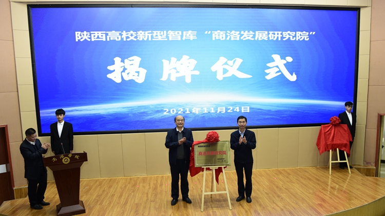 在與會(huì)領(lǐng)導(dǎo)的共同見證下,高嶺和權(quán)雅寧分別代表陜西省教育廳和商洛市人民政府簽署省市共建商洛學(xué)院協(xié)議。張軍林和劉建林共同為我校兩個(gè)新型科研平臺(tái)——陜西高校新型智庫(kù)“商洛發(fā)展研究院”和“秦嶺康養(yǎng)大數(shù)據(jù)陜西高校工程研究中心”揭牌。