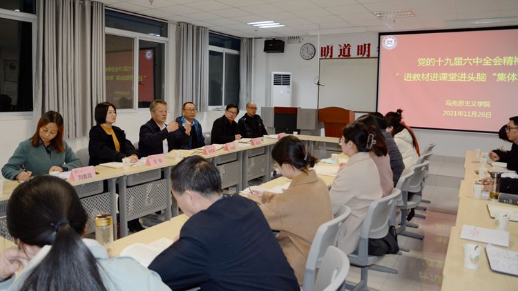 為深入學(xué)習(xí)黨的十九屆六中全會精神,推進(jìn)全會精神進(jìn)教材進(jìn)課堂進(jìn)頭腦,11月26日下午,我校召開黨的十九屆六中全會精神“三進(jìn)”集體備課會。校黨委書記張志昌、副校長劉寶盈出席會議,教務(wù)處、中國特色社會主義理論體系研究中心負(fù)責(zé)人,馬克思主義學(xué)院相關(guān)負(fù)責(zé)人及全體教師參加會議。