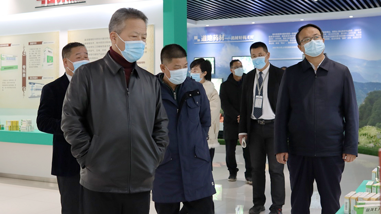 揭牌暨聘任儀式結(jié)束后,張志昌、范新會一行在盤龍藥業(yè)集團股份有限公司董事曹永靈的陪同下,參觀了盤龍藥業(yè)集團股份有限公司發(fā)展成就廳和藥品檢測實驗室,深入了解企業(yè)文化、發(fā)展現(xiàn)狀、經(jīng)營戰(zhàn)略及藥品生產(chǎn),并進行了深入交流。