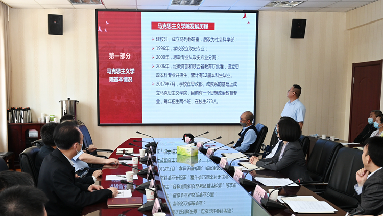 學(xué)校教務(wù)處、科技處、學(xué)科辦公室、宣傳部以及馬克思主義學(xué)院相關(guān)負(fù)責(zé)人、教師代表參加匯報(bào)會。