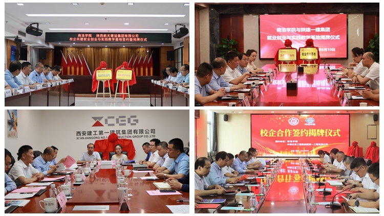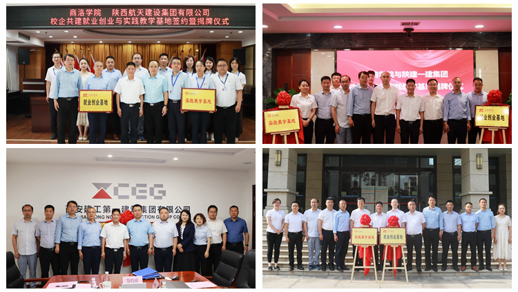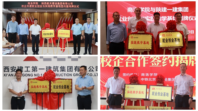 范新會分別與陜西航天建設(shè)集團有限公司總經(jīng)理王明虎,陜西建工第一建設(shè)集團有限公司工會主席、紀委書記袁勇,西安建工第一建筑集團有限公司董事長李寶龍,中鐵北京工程局集團第一工程有限公司黨委副書記、紀委書記王晉偉共同為就業(yè)創(chuàng)業(yè)基地和實踐教學(xué)基地揭牌。