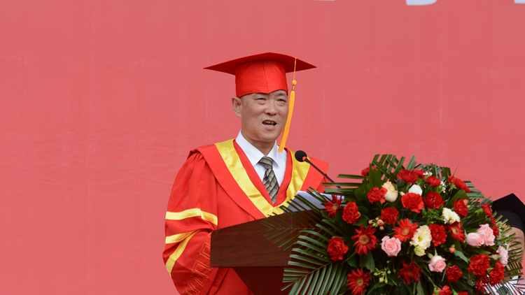 城鄉(xiāng)規(guī)劃與建筑工程學院張孝存教授作為教師代表發(fā)言。他希望同學們在未來的人生道路上,要牢記“博聞強志 正道直行”的校訓,堅守承擔、承受、承認、誠實,始終心懷希望,揚長避短,勇于探索,不負熱愛,積極尋找事業(yè)成功的希望,積極尋找人生幸福的希望。