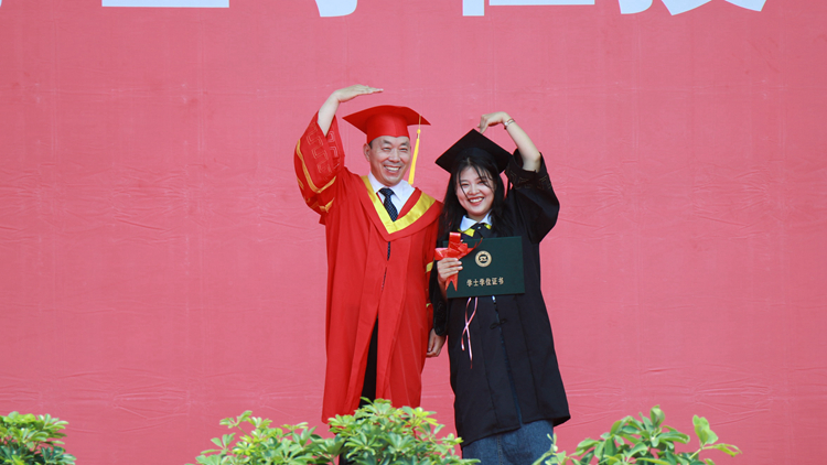 畢業(yè)典禮在校歌《正道直行做棟梁》中圓滿結束,學位授予儀式分別在北新街校區(qū)體育場、圖書館二樓報告廳和丹江校區(qū)體育館同時進行。畢業(yè)生們依次上臺,由校領導范新會、彭虎軍、劉寶盈、王新軍為獲得學士學位的畢業(yè)生正冠撥穗,頒發(fā)學位證書,并與同學們一一合影留念。
