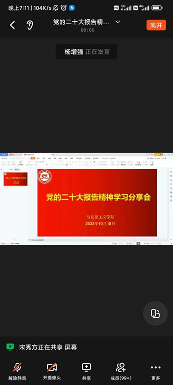 馬克思主義學(xué)院青年教師宋秀方、劉健、王曉霞、李娜娜在會上作了發(fā)言交流,表示將深入學(xué)習(xí)黨的二十大報告,從自身做起努力推進(jìn)報告精神“三進(jìn)”工作。
