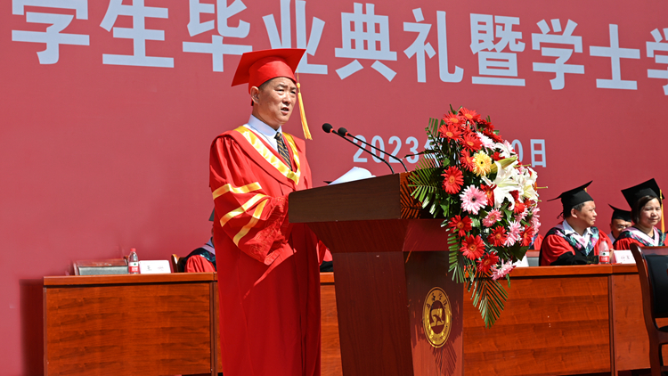 畢業(yè)驪歌起,青春將遠航。6月30日上午,我校隆重舉行2023屆學(xué)生畢業(yè)典禮暨學(xué)士學(xué)位授予儀式。3324名畢業(yè)生懷揣青春的夢想,開啟人生新旅程。校領(lǐng)導(dǎo)張志昌、范新會、劉勇、劉寶盈、王新軍、郭瑾出席典禮。2023屆畢業(yè)生通過線上線下結(jié)合的方式,在北新街校區(qū)和丹江校區(qū)同時參與,同上大學(xué)的最后一課。典禮通過商洛學(xué)院官方微視號和抖音號全程直播。