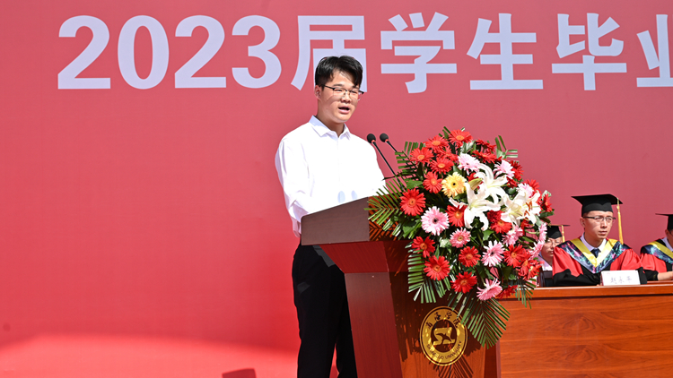 在校生代表、經(jīng)濟管理學(xué)院學(xué)生劉奕喆代表全體在校生向2023屆畢業(yè)生送上最真摯的祝福,祝愿學(xué)長學(xué)姐們在新征途上大展宏圖、譜寫華章,此去繁華相送,再遇情誼依舊!