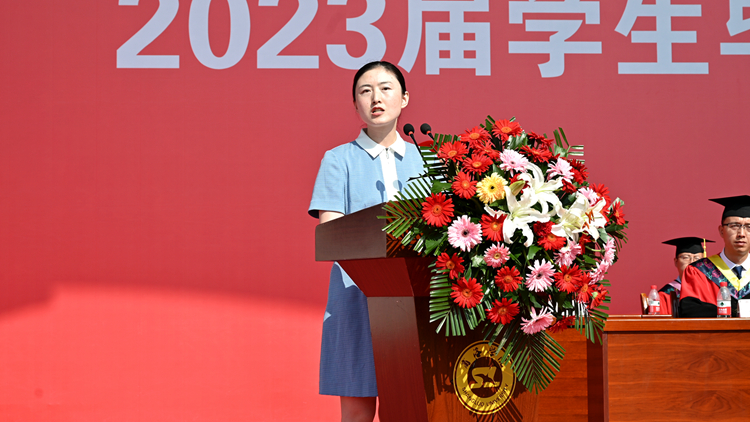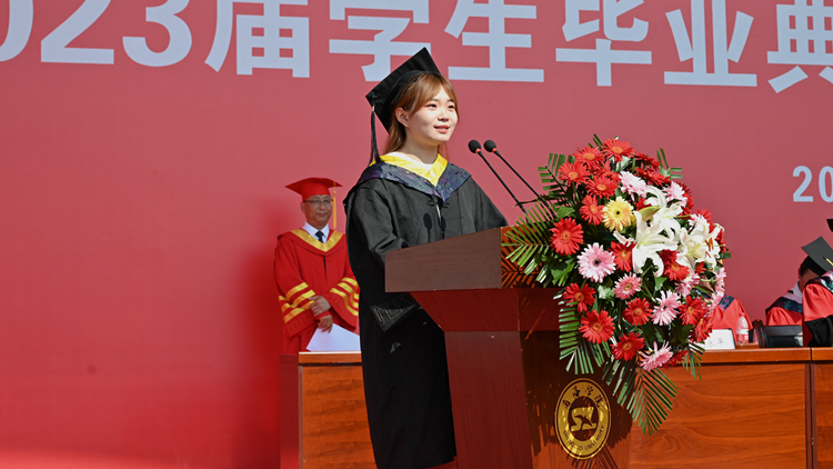 畢業(yè)生代表、生物醫(yī)藥與食品工程學(xué)院學(xué)生趙旭瑩分享了自己四年來的奮斗與收獲,并代表2023屆畢業(yè)生向校領(lǐng)導(dǎo)、師長以及一路相伴的同窗致以誠摯的感謝和祝福。她表示,精彩的大學(xué)生活即將結(jié)束,更加璀璨的藍圖在不遠的將來,她將與其他畢業(yè)生懷揣夢想,腳踏實地,以真才實學(xué)服務(wù)人民,以創(chuàng)新創(chuàng)造奉獻國家!