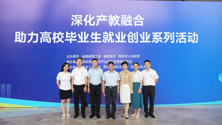 7月13日,由陜西省委教育工委、省教育廳、西安市人民政府主辦,西安高新區(qū)管委會承辦,西安工業(yè)大學(xué)、西安建筑科技大學(xué)、西安郵電大學(xué)協(xié)辦的“陜西省深化產(chǎn)教融合助力高校畢業(yè)生就業(yè)創(chuàng)業(yè)系列活動”在西安高新區(qū)開幕。我校“雙聘院士”、中國工程院院士張生勇出席開幕式,并親臨我??萍汲晒古_參觀指導(dǎo)。校長范新會參加開幕式。