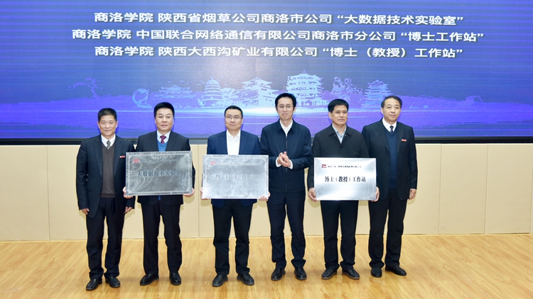 在熱烈的掌聲中,陳發(fā)虎、趙璟為“商洛康養(yǎng)產(chǎn)業(yè)研究院”揭牌。孫舉恒、張志昌共同為“秦嶺商洛生物醫(yī)藥產(chǎn)業(yè)知識產(chǎn)權(quán)研究中心”、“陜西省知識產(chǎn)權(quán)信息公共服務(wù)網(wǎng)點”、“商洛學(xué)院秦創(chuàng)原創(chuàng)新促進中心工作站”揭牌。孫舉恒、范新會、王新軍共同為陜西煙草商洛分公司“大數(shù)據(jù)技術(shù)實驗室”、中國聯(lián)通商洛分公司“博士工作站”、大西溝礦業(yè)有限公司“博士(教授)工作站”授牌,商洛市煙草局局長洪煒、商洛聯(lián)通公司總經(jīng)理李建慶、大西溝礦業(yè)有限公司總經(jīng)理聶建倉代表企業(yè)接牌。