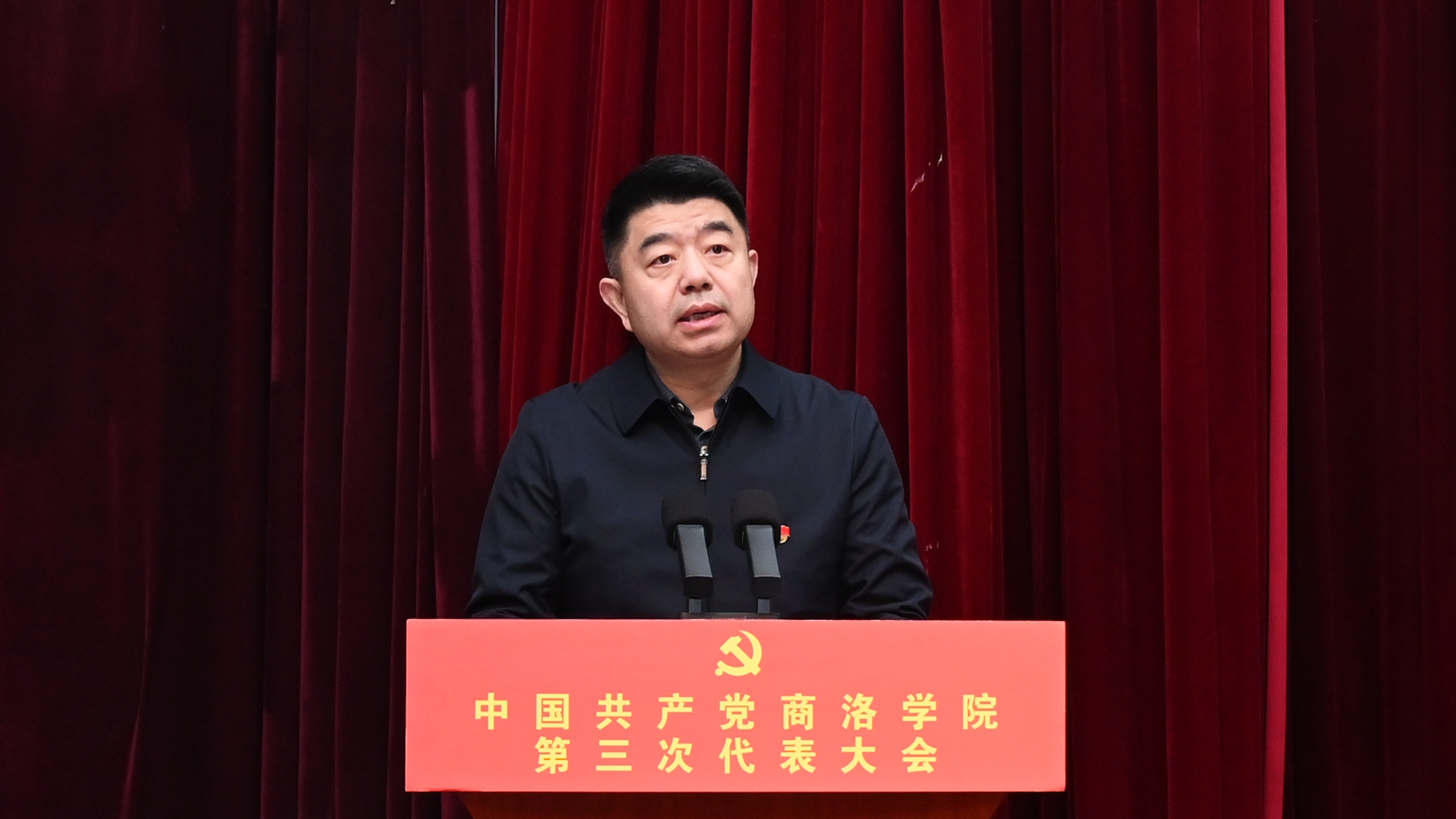 賈永安代表商洛市委、市政府對大會的勝利召開表示熱烈的祝賀。他表示,自我校第二次黨代會召開以來,全體黨員干部師生認(rèn)真貫徹落實習(xí)近平新時代中國特色社會主義思想和習(xí)近平總書記歷次來陜考察重要講話重要指示精神,全面落實建設(shè)教育強國的時代重任,秉持立足商洛、面向地方、服務(wù)基層、培養(yǎng)應(yīng)用型人才的辦學(xué)定位,不斷深化改革,加快發(fā)展,取得了有目共睹的好成績。在實現(xiàn)自身健康持續(xù)發(fā)展的同時,學(xué)校積極踐行服務(wù)地方使命,充分發(fā)揮高??萍佳邪l(fā)中心和人才高地的作用,引領(lǐng)商洛高新產(chǎn)業(yè)發(fā)展,助力地方脫貧攻堅和鄉(xiāng)村振興,為建設(shè)中國康養(yǎng)之都貢獻了重要力量。賈永安代表商洛市委、市政府對我校提出三點希望:一是扎實做好黨建工作,保持全面從嚴(yán)治黨的嚴(yán)基調(diào);二是接續(xù)開拓奮進,書寫高質(zhì)量發(fā)展的新篇章;三是踐行服務(wù)地方使命,構(gòu)建校地融合發(fā)展的新格局。