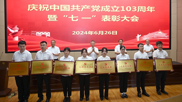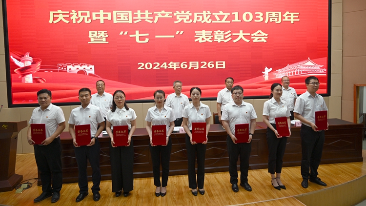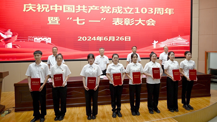 6月26日下午,我校在圖書(shū)館二樓報(bào)告廳召開(kāi)慶祝中國(guó)共產(chǎn)黨成立103周年暨“七一”表彰大會(huì)。校黨委書(shū)記張志昌出席大會(huì)并講話。大會(huì)對(duì)36名優(yōu)秀共產(chǎn)黨員、15名優(yōu)秀黨務(wù)工作者、3個(gè)先進(jìn)基層黨委和13個(gè)先進(jìn)黨支部進(jìn)行表彰。黨委委員、副校長(zhǎng)劉寶盈、王新軍、郭瑾出席大會(huì)并向受表彰集體和個(gè)人代表頒發(fā)獎(jiǎng)牌證書(shū)。大會(huì)由劉寶盈主持。