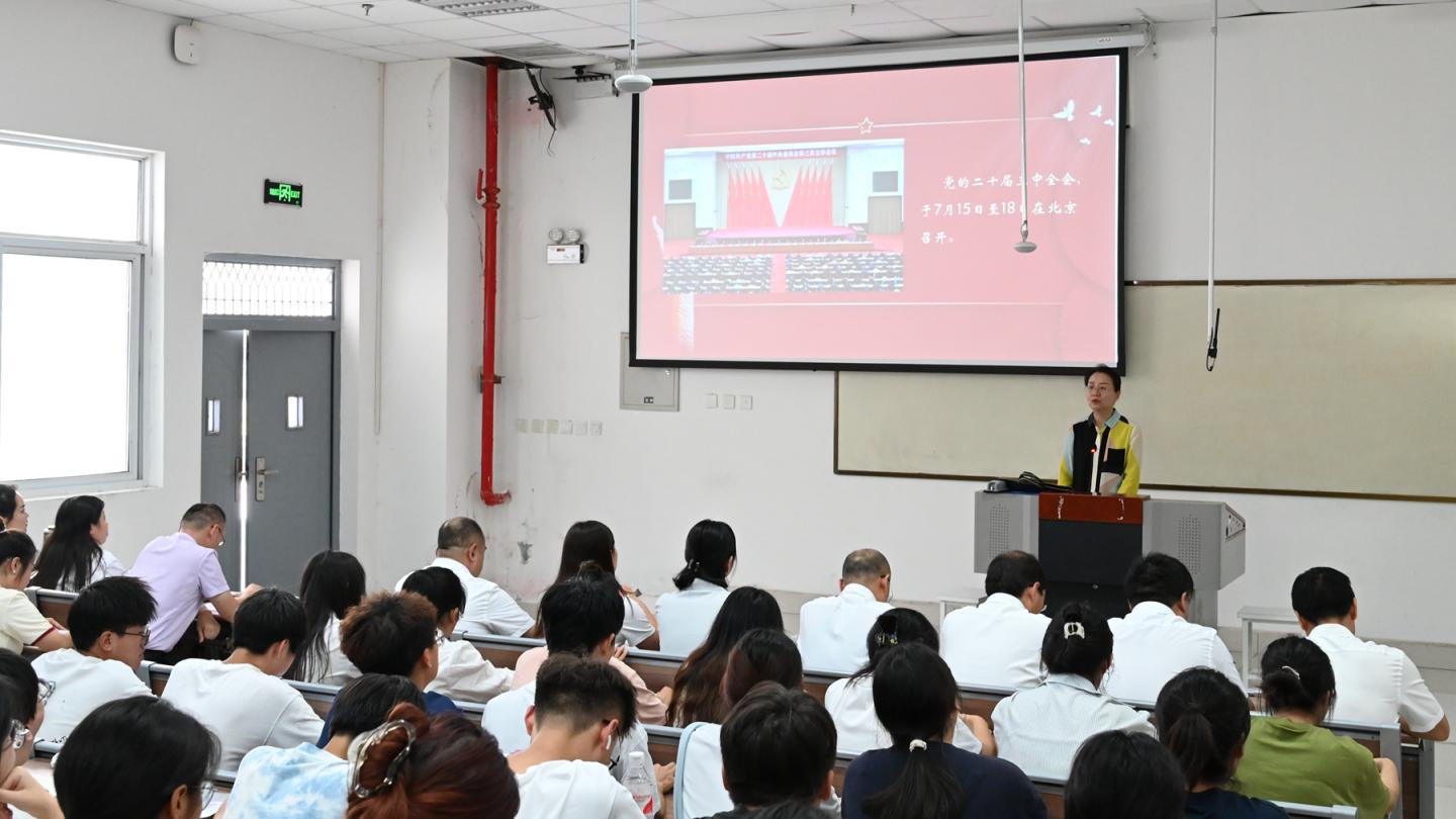 校領(lǐng)導(dǎo)圍繞“全會有關(guān)情況和重大意義、全會對教育事業(yè)作出的部署、學(xué)習(xí)全會精神應(yīng)把握的重點、青年大學(xué)生如何學(xué)習(xí)貫徹全會精神”四個方面,帶領(lǐng)廣大青年學(xué)子深入學(xué)習(xí)了解黨的二十屆三中全會精神,號召全體師生緊密團結(jié)在以習(xí)近平同志為核心的黨中央周圍,在推進(jìn)中國式現(xiàn)代化的新征程上貢獻(xiàn)個人力量。