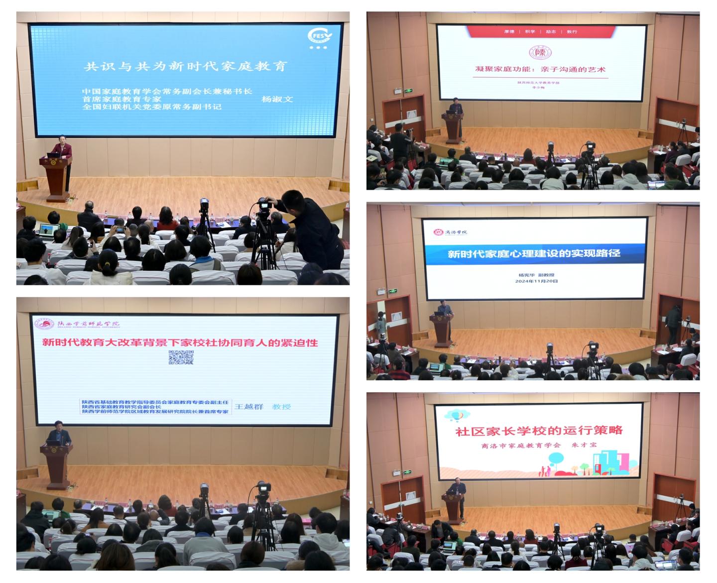 開(kāi)幕式結(jié)束后,楊淑文、王越群、李少梅、我校健康管理學(xué)院副院長(zhǎng)楊憲華、朱才寶分別以《新時(shí)代家庭教育的共識(shí)與共為》《國(guó)家教育大改革背景下家校社協(xié)同育人的緊迫性》《凝聚家庭功能:親子溝通的藝術(shù)》《新時(shí)代家庭心理建設(shè)的實(shí)現(xiàn)路徑》《社區(qū)家長(zhǎng)學(xué)校的運(yùn)行策略》為題作了專(zhuān)題報(bào)告。
