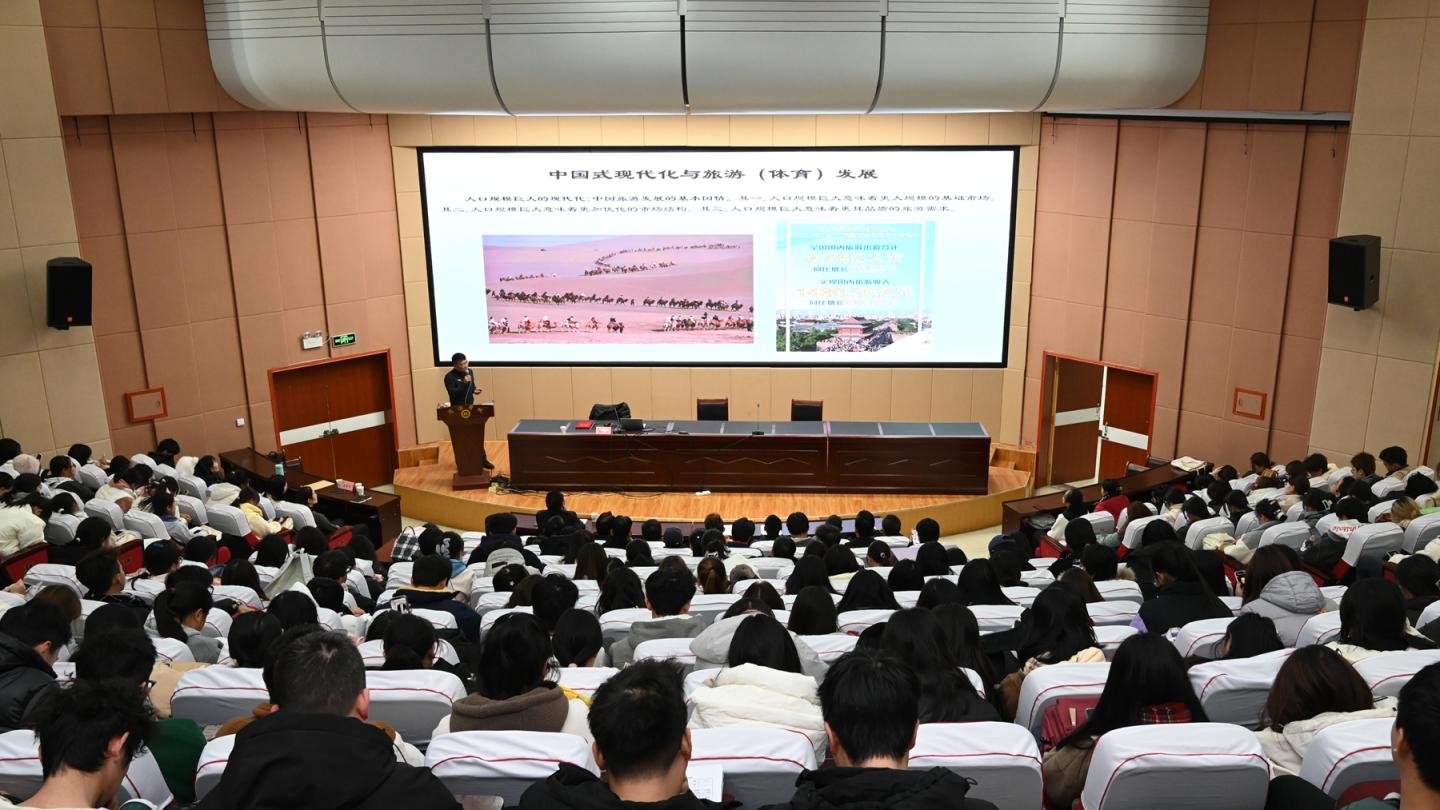 聘任儀式結(jié)束后,張婧教授作了題為《如何做好自己健康的第一責(zé)任人》的報(bào)告。她從影響健康的因素出發(fā),提出“運(yùn)動(dòng)零食計(jì)劃”的新理念,對(duì)部分體育鍛煉案例進(jìn)行分析,最終以研究成果反哺實(shí)踐應(yīng)用。楊濤教授以《中國(guó)式現(xiàn)代化與體育旅游業(yè)高質(zhì)量發(fā)展》為題,從中國(guó)式現(xiàn)代化與體育旅游發(fā)展、綠色發(fā)展理念的內(nèi)涵與價(jià)值、體育旅游產(chǎn)業(yè)的高質(zhì)量發(fā)展、綠色發(fā)展理念與高質(zhì)量發(fā)展的邏輯關(guān)系、體育產(chǎn)業(yè)與健康養(yǎng)老、文化旅游融合發(fā)展五個(gè)方面展開(kāi)詳細(xì)闡述,結(jié)合商洛實(shí)際情況提出了“體育+旅游+康養(yǎng)”的融合發(fā)展新模式。