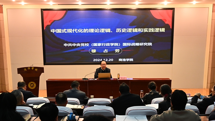 穆占勞教授的輔導報告以《中國式現(xiàn)代化的理論邏輯、歷史邏輯和實踐邏輯》為主題,深入解析了新時代新征程中國共產(chǎn)黨的使命任務,中國式現(xiàn)代化的五個中國特色、九個本質要求、五個重大原則,闡釋了習近平中國式現(xiàn)代化理論的核心要義,明確了習近平中國式現(xiàn)代化理論是科學社會主義的最新重大成果。通過對中西方現(xiàn)代化進程的對比和近代以來中國從“救國”“立國”“富國”到“強國”的歷史梳理,穆占勞教授系統(tǒng)總結了世界各國現(xiàn)代化的共同特征、經(jīng)驗啟示及失敗教訓,揭示了中國式現(xiàn)代化的歷史邏輯,從當前發(fā)展面臨的國內外環(huán)境、戰(zhàn)略機遇等方面深刻剖析了中國式現(xiàn)代化的實踐邏輯。