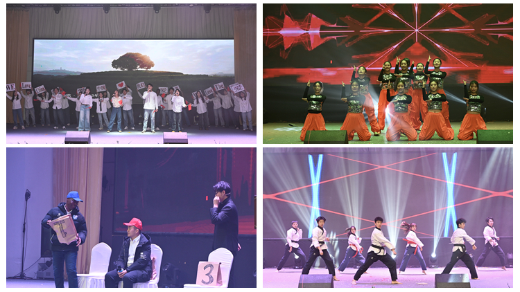 原創(chuàng)詩朗誦《遇見》,在時(shí)光長河的波光里回顧了學(xué)校發(fā)展歷程,歌頌了2024年逐光而行的不凡成就,激勵(lì)廣大師生與學(xué)校一道載夢飛翔。舞蹈《額爾古納河》展現(xiàn)了祖國山河的壯美與柔情,體現(xiàn)出人與自然的和諧共生。歌劇《沂蒙山》選段演繹了革命戰(zhàn)士大青山突圍、淵子崖戰(zhàn)役的崢嶸歷史?!段业拇髮W(xué)時(shí)代》通過逗趣的相聲表演生動(dòng)再現(xiàn)了課堂奇遇、宿舍笑談的幽默時(shí)刻。明快靈動(dòng)的小合唱《唱得幸福落滿坡》,用歌聲把觀眾帶到了豐收的田野中,看到了農(nóng)民臉上洋溢的幸福笑容。二胡獨(dú)奏《戰(zhàn)馬奔騰》飽含著勇往直前的力量,訴說著英雄們的壯志豪情?!稇蚯?lián)唱》將眾多藝術(shù)形式巧妙聚集,唱念做打、五彩臉譜,一招一式盡顯東方之美。外籍教師羅杰一、王亮、艾瑪和國際創(chuàng)意課程學(xué)生合唱《We are the world》,用音樂展現(xiàn)了超越國界和文化的團(tuán)結(jié)友愛。魔術(shù)表演《選擇》以絕妙的構(gòu)思、精湛的手法為觀眾帶來無盡驚喜。舞蹈表演《醉春風(fēng)》,在水墨煙雨中弄花影、戲春風(fēng),展現(xiàn)了草長鶯飛、杏花春雨的江南美景。《流行歌曲串燒》唱響青春之歌,給燦爛的成長歲月點(diǎn)燃生生不息的花火?!段鋭?dòng)華章》將太極的柔、雙截棍的巧、跆拳道的剛匯聚一處,在動(dòng)靜之間帶領(lǐng)觀眾走進(jìn)武術(shù)世界。健身操舞《青春就這young》整齊劃一的動(dòng)作、自信美麗的笑容,展現(xiàn)了商院學(xué)子積極向上的精神風(fēng)貌。