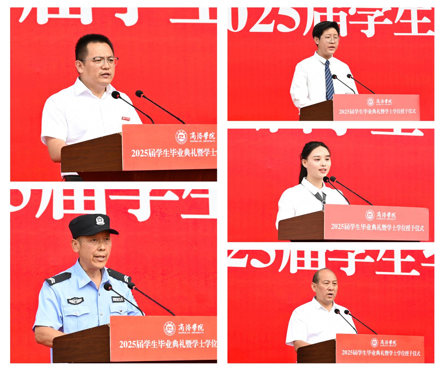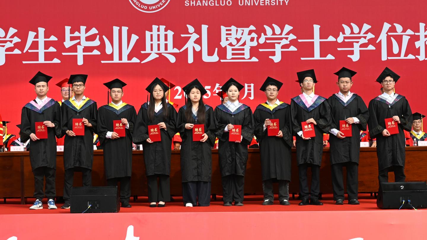 黨委副書記王新軍宣讀了商洛學(xué)院2025屆畢業(yè)生資格審查結(jié)果、學(xué)士學(xué)位授予決議、商洛學(xué)院優(yōu)秀畢業(yè)生表彰決定、商洛學(xué)院“奉獻(xiàn)基層 服務(wù)邊疆”優(yōu)秀畢業(yè)生表彰決定、商洛學(xué)院校友總會聘任2025屆校友聯(lián)絡(luò)員通知。在熱烈的掌聲中,校領(lǐng)導(dǎo)為優(yōu)秀畢業(yè)生、“奉獻(xiàn)基層 服務(wù)邊疆”優(yōu)秀畢業(yè)生頒發(fā)了證書,為校友聯(lián)絡(luò)員頒發(fā)了聘書。