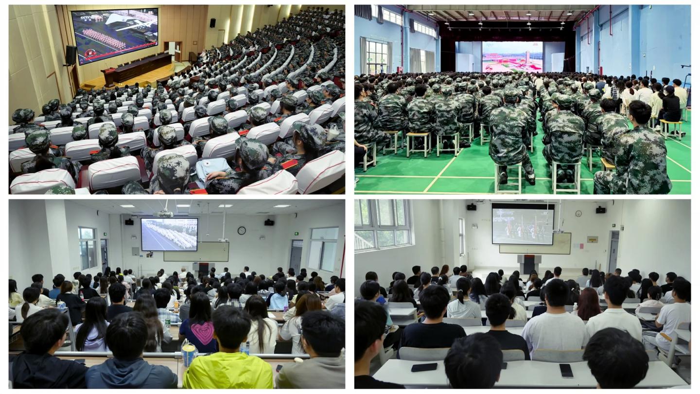 全體在校校領(lǐng)導(dǎo),各職能部門、各二級(jí)學(xué)院黨政主要負(fù)責(zé)人以及全??萍?jí)以上干部在主會(huì)場(chǎng)共同觀看大會(huì)盛況。2025級(jí)新生、輔導(dǎo)員及其他無(wú)課師生在各分會(huì)場(chǎng)集中收看。大家精神振奮、熱情高漲,認(rèn)真聆聽(tīng)習(xí)近平總書記的重要講話,對(duì)閱兵式出場(chǎng)的各類方隊(duì)和新式武器裝備發(fā)出連連贊嘆,用熱烈的掌聲表達(dá)對(duì)祖國(guó)深深的祝福。
