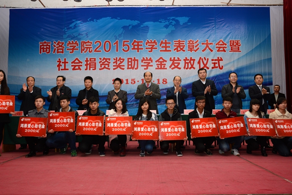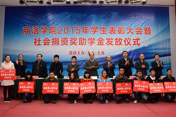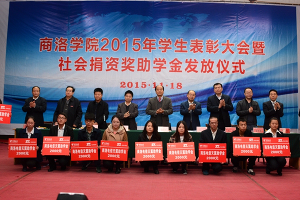 2015年,“國網(wǎng)商洛電力”助學金、商洛郵政“鴻雁愛心”助學金、商洛聯(lián)通“沃校園”助學金、商洛電信天翼助學金、森弗愛心獎學金及助學金共資助我校學生180名,總金額38萬元。