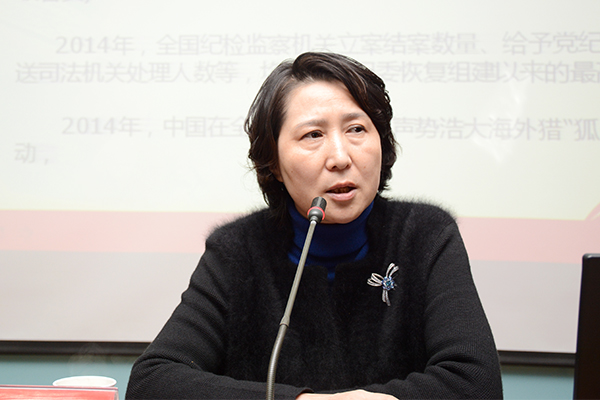 姜杰闡述了十八大以來的反腐形勢,回顧了2014年全國反腐情況,分析了2015年反腐任務(wù)清單,講解了職務(wù)犯罪的概念、分類及特點,并結(jié)合法律法規(guī)及真實案例,對貪污罪、受賄罪、挪用公款、小金庫等典型職務(wù)犯罪行為,進行了深入剖析。在報告中,她對防范職務(wù)犯罪提出了具體建議,希望黨員干部嚴(yán)以用權(quán),恪守職業(yè)準(zhǔn)則,正確看待圍繞在權(quán)力周圍的人和事,享受自由的可貴,愛惜自己和家人,遠離職務(wù)犯罪。