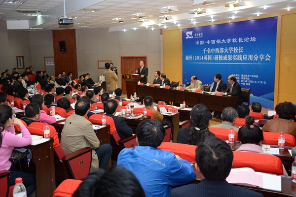 10月31-11月1日,“中國(guó)?中西部大學(xué)校長(zhǎng)論壇——千名中西部大學(xué)校長(zhǎng)海外(2014英國(guó))研修成果實(shí)踐應(yīng)用分享會(huì)”在我校隆重召開。來(lái)自全國(guó)17個(gè)省市22所中西部大學(xué)的40余位書記、校長(zhǎng)、專家齊聚我校,共同探討交流應(yīng)用型本科院校建設(shè)等有關(guān)問(wèn)題。教育部港澳臺(tái)辦常務(wù)副主任趙靈山、國(guó)家教育行政學(xué)院涉外培訓(xùn)部主任樊平軍、陜西省委高教工委常務(wù)副書記董小龍,商洛市委常委、副市長(zhǎng)武文罡出席會(huì)議。