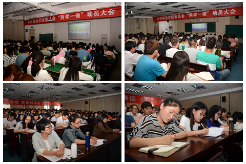 劉建林在講話(huà)中從“凝聚共識(shí),深刻領(lǐng)會(huì)‘兩學(xué)一做’學(xué)習(xí)教育的重大意義;聚焦主要內(nèi)容,扎實(shí)推進(jìn)‘兩學(xué)一做’學(xué)習(xí)教育;嚴(yán)抓落實(shí),確保‘兩學(xué)一做’學(xué)習(xí)教育取得實(shí)效”三個(gè)方面全面闡釋了“兩學(xué)一做”學(xué)習(xí)教育的重大意義、目標(biāo)任務(wù)和主要內(nèi)容,對(duì)我校黨員師生開(kāi)展“兩學(xué)一做”提出了具體要求。他指出,在全體黨員中開(kāi)展“學(xué)黨章黨規(guī)、學(xué)系列講話(huà),做合格黨員”學(xué)習(xí)教育,是繼黨的群眾路線(xiàn)教育實(shí)踐活動(dòng)、“三嚴(yán)三實(shí)”專(zhuān)題教育之后,深化黨內(nèi)教育的又一次重要實(shí)踐,也是面向全體黨員從集中性教育活動(dòng)向經(jīng)常性教育延伸的重要舉措。在學(xué)校構(gòu)建“穩(wěn)基、提質(zhì)、增速,創(chuàng)新驅(qū)動(dòng)發(fā)展”的新常態(tài),全面實(shí)施本科教育的關(guān)鍵時(shí)期開(kāi)展“兩學(xué)一做”學(xué)習(xí)教育至關(guān)重要,目的就是加強(qiáng)黨的建設(shè),要求全體黨員以學(xué)促做、知行合一,成為講政治、有信念,講規(guī)矩、有紀(jì)律,講道德、有品行,講奉獻(xiàn)、有作為的合格黨員,在實(shí)現(xiàn)個(gè)人價(jià)值的同時(shí)為學(xué)校發(fā)展做出貢獻(xiàn)。