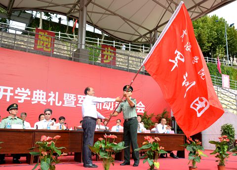 9月5日,天穹碧藍,艷陽高照,我校在體育場隆重舉行2016級學生開學典禮暨軍訓動員大會。商洛市委常委、市人民政府副市長王華,校領導劉建林、范新會、魏書堂、劉寶盈,陸軍第47集團軍某部政治部副主任張文平中校,陸軍第47集團軍某部機步營營長、商洛學院2016級學生軍訓團團長馬防少校,商洛市人民政府辦公室紀檢組長郭安貴出席大會。校黨委書記、校長劉建林作重要講話,并向承訓教官授予2016級學生軍訓團團旗。大會由校黨委副書記彭虎軍主持。各學院(部)黨、政主要負責人,學生處、教務處、招生就業(yè)處、宣傳部、校團委、圖書館主要負責人及2016級新生參加了大會。