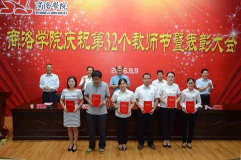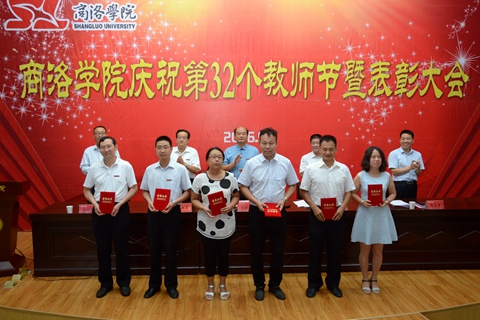 在莊嚴(yán)的國歌聲中,慶祝暨表彰大會(huì)開始。校黨委副書記彭虎軍宣讀了表彰決定。出席大會(huì)的校領(lǐng)導(dǎo)為獲得先進(jìn)集體榮譽(yù)稱號(hào)的化學(xué)工程與現(xiàn)代材料學(xué)院、生物醫(yī)藥與食品工程學(xué)院、語言文化傳播學(xué)院、教務(wù)處、教學(xué)評(píng)估中心5個(gè)單位,獲得優(yōu)秀教師榮譽(yù)稱號(hào)的冀玉良等21人,獲得優(yōu)秀教育工作者榮譽(yù)稱號(hào)的何念武等9人,獲得師德先進(jìn)集體榮譽(yù)稱號(hào)的城鄉(xiāng)規(guī)劃與建筑工程學(xué)院、經(jīng)濟(jì)與管理學(xué)院、學(xué)生處3個(gè)單位,獲得師德先進(jìn)個(gè)人榮譽(yù)稱號(hào)的黃元英等10人頒獎(jiǎng)。