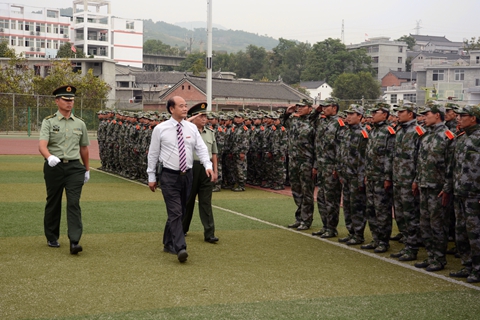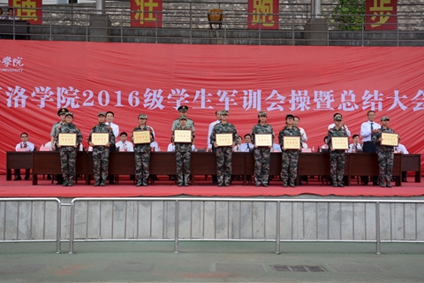 9月18日下午,我校隆重舉辦2016級學(xué)生軍訓(xùn)會操暨總結(jié)大會,檢閱2016級學(xué)生軍訓(xùn)成果,對軍訓(xùn)中涌現(xiàn)出的先進集體和個人進行表彰。校領(lǐng)導(dǎo)劉建林、范新會、王思懷、魏書堂、彭虎軍、劉寶盈,商洛軍分區(qū)參謀長李水龍大校,中國人民解放軍第47集團軍某部機步營營長、我校2016級學(xué)生軍訓(xùn)團團長馬防少校出席大會并為先進集體和個人頒獎。各二級學(xué)院黨政負責(zé)人,各職能部門負責(zé)人,全體2016級學(xué)生及輔導(dǎo)員參加了大會。大會由黨委副書記、副校長范新會主持。