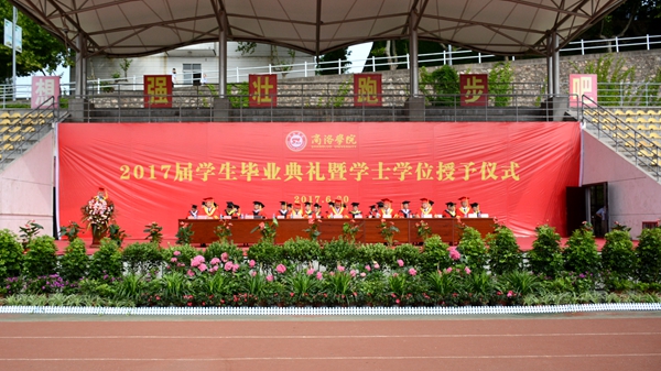 6月30日,我校隆重舉行2017屆學(xué)生畢業(yè)典禮暨學(xué)士學(xué)位授予儀式。校領(lǐng)導(dǎo)龍治剛、范新會、王思懷、魏書堂、彭虎軍、劉寶盈、劉勇出席典禮。各院(部)黨政主要負(fù)責(zé)人,校學(xué)位評定委員會委員,相關(guān)部門負(fù)責(zé)人,全體畢業(yè)生及畢業(yè)班輔導(dǎo)員、班主任參加典禮。典禮由黨委副書記彭虎軍主持。