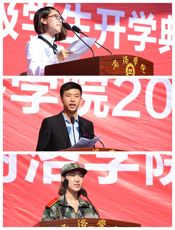 教師代表喬成芳博士,在校學(xué)生代表王祥宇,2017級新生代表張海明分別作了熱情洋溢的發(fā)言。