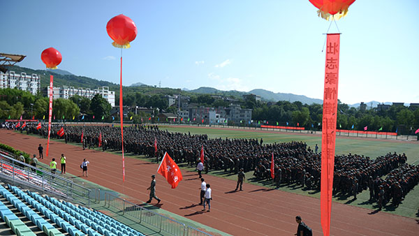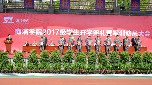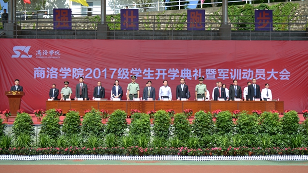 金秋送爽,丹桂飄香。9月6日上午,我校2017級學(xué)生開學(xué)典禮暨軍訓(xùn)動員大會在學(xué)校體育場隆重舉行。校領(lǐng)導(dǎo)龍治剛、范新會、王思懷、魏書堂、彭虎軍、劉寶盈、劉勇,中國人民解放軍陸軍第77集團軍保障旅政治處副主任趙鑫中校,中國人民解放軍陸軍第77集團軍保障旅二營營長、商洛學(xué)院2017級學(xué)生軍訓(xùn)團團長馬防少校,我校2010屆校友、商洛市旭初農(nóng)林開發(fā)有限公司總經(jīng)理周麗娜出席大會。各學(xué)院(部)黨政主要負責(zé)人、有關(guān)職能部門負責(zé)人及3100余名2017級新生參加大會。大會由校黨委副書記彭虎軍主持。