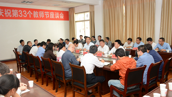 為慶祝第33個(gè)教師節(jié),推動(dòng)我校師資隊(duì)伍建設(shè),弘揚(yáng)尊師重教的良好風(fēng)尚,營(yíng)造尊重知識(shí)、尊重人才的氛圍,9月6日-7日,我校分別召開(kāi)了博士座談會(huì)、青年教師代表座談會(huì)、高級(jí)職稱(chēng)教師代表座談會(huì),教師代表歡聚一堂慶祝自己的節(jié)日,共話學(xué)校發(fā)展藍(lán)圖。校領(lǐng)導(dǎo)龍治剛、范新會(huì)、魏書(shū)堂、彭虎軍、劉寶盈、劉勇出席座談會(huì),人事處、教務(wù)處、科技處、資產(chǎn)處、后勤保障處相關(guān)負(fù)責(zé)人參加了座談會(huì)。座談會(huì)由黨委副書(shū)記、校長(zhǎng)范新會(huì)主持。