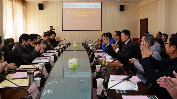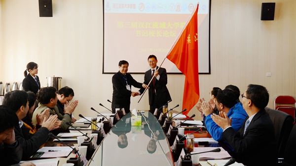 在書記校長論壇上,我校作為2018年漢江流域聯(lián)盟輪值理事長單位接受2017年漢江流域聯(lián)盟輪值理事長單位、南陽師范學(xué)院黨委書記黃榮杰授旗,副校長劉勇接旗;表決通過了湖北汽車工業(yè)學(xué)院作為2019年輪值理事長單位并成立新的秘書處,負(fù)責(zé)盟內(nèi)日常工作的開展。聯(lián)盟高校的書記校長以“深化合作,開拓創(chuàng)新,促進(jìn)漢江流域大學(xué)建設(shè)”為主題,圍繞“雙一流”建設(shè)與創(chuàng)新發(fā)展、應(yīng)用型人才培養(yǎng)與創(chuàng)新發(fā)展、師資隊(duì)伍建設(shè)與創(chuàng)新發(fā)展、高校治理體系法治化與創(chuàng)新發(fā)展、國際合作交流與創(chuàng)新發(fā)展、大學(xué)文化建設(shè)與創(chuàng)新發(fā)展、高校黨的建設(shè)與創(chuàng)新發(fā)展等議題分別作了主題發(fā)言。他們共同表示,聯(lián)盟高校要以黨的十九大精神為指導(dǎo),立足國家戰(zhàn)略和區(qū)域規(guī)劃,瞄準(zhǔn)區(qū)域經(jīng)濟(jì)社會(huì)發(fā)展需要,加強(qiáng)相互合作與發(fā)展,創(chuàng)新協(xié)同發(fā)展體制機(jī)制,實(shí)現(xiàn)優(yōu)勢(shì)互補(bǔ)、整體提升,開創(chuàng)互利合作共贏新局面。