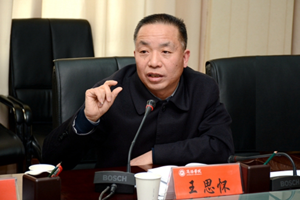 結(jié)合我校實際,王思懷就深入學(xué)習(xí)宣傳貫徹落實黨的十九大精神提出了三點(diǎn)要求,一是要以“三進(jìn)”要求為動力,學(xué)懂。要使黨的十九大精神進(jìn)教案、進(jìn)課堂、進(jìn)學(xué)生頭腦,實現(xiàn)人人知曉、入腦入心、落地生根,營造學(xué)習(xí)宣傳貫徹濃厚氛圍;二要以科學(xué)研究為抓手,弄通。要深入研究黨的十九大精神,組織重大理論研討和課題攻關(guān),發(fā)揮理論研究的牽引帶動作用,形成一批高質(zhì)量、有深度的研究成果;三要以推動工作為目的,做實。學(xué)習(xí)貫徹黨的十九大精神,關(guān)鍵要實。要以黨的十九大精神為指導(dǎo),堅持理論聯(lián)系實際,認(rèn)真總結(jié)2017年工作,創(chuàng)造性超前思考2018年規(guī)劃,在推動工作、見諸行動上取得實效。