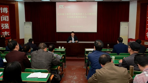 校黨委書記龍治剛、校長(zhǎng)范新會(huì)分別介紹了十三屆全國(guó)人大一次會(huì)議、全國(guó)政協(xié)十三屆一次會(huì)議概況,傳達(dá)了兩會(huì)精神,帶領(lǐng)大家重點(diǎn)學(xué)習(xí)了習(xí)近平總書記在兩會(huì)期間的重要講話精神。黨委副書記彭虎軍就培訓(xùn)目的、內(nèi)容、方式及相關(guān)要求進(jìn)行了安排部署。