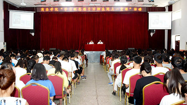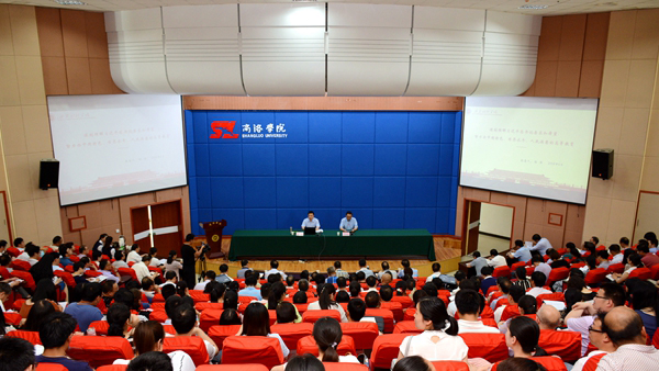 6月13日,按照陜西省委高教工委統(tǒng)一部署,我校舉辦“學(xué)習(xí)新思想 千萬(wàn)師生同上一堂課”活動(dòng),陜西高?!傲?xí)近平總書記重要講話精神講師團(tuán)”成員、西安財(cái)經(jīng)學(xué)院黨委書記楊濤和陜西科技大學(xué)團(tuán)委副書記李鵬分別為我校師生作了專題報(bào)告。校領(lǐng)導(dǎo)龍治剛、范新會(huì)、王思懷、彭虎軍、劉勇,黨委委員王新軍、李超、楊存典、張向東,科級(jí)以上干部、全體教師及學(xué)生代表共1000余人參加活動(dòng)。校黨委書記龍治剛、黨委副書記彭虎軍分別主持師生報(bào)告會(huì)。