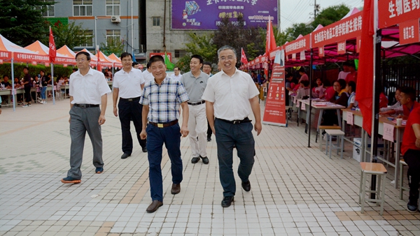 9月6日,陜西省政府學(xué)位委員會(huì)秘書長(zhǎng)袁寧一行來(lái)我校檢查指導(dǎo)工作。校長(zhǎng)范新會(huì)、副校長(zhǎng)魏書堂、黨委副書記彭虎軍、商洛市政府教育督導(dǎo)室主任白發(fā)善等人陪同檢查。