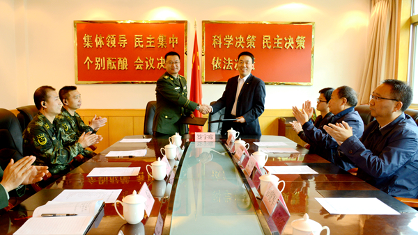 彭虎軍代表學校與武警商洛支隊簽訂了合作共建框架協(xié)議。與會人員一同參觀了武警商洛支隊機動中隊生活場所,觀摩了武警戰(zhàn)士軍事技能訓練。