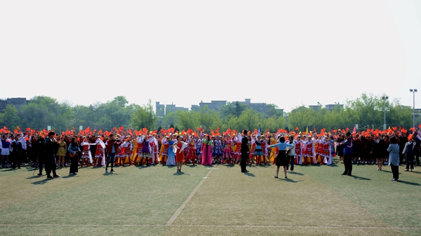 開幕式文體表演亮點(diǎn)頗多,精彩紛呈。我校航模隊(duì)與商洛市航空運(yùn)動(dòng)協(xié)會(huì)夢(mèng)想飛行表演隊(duì)的航模表演率先開場(chǎng),航模飛機(jī)在激昂的音樂聲中搏擊長(zhǎng)空,升降翻轉(zhuǎn),劃出一道道優(yōu)美的弧線。建工學(xué)院學(xué)生以紅扇跳勁舞,龍虎相隨,青春激情,以歡快的舞姿、動(dòng)感的隊(duì)形充分展現(xiàn)青春活力?;膶W(xué)院學(xué)生用熱情歡快的啦啦操和“1949”“70”的隊(duì)形,表達(dá)對(duì)祖國(guó)深深的熱愛與誠(chéng)摯的祝福。數(shù)計(jì)學(xué)院學(xué)生以整齊優(yōu)雅的華爾茲雙人舞,展現(xiàn)學(xué)子儒雅優(yōu)秀的一面,用“SLXY"圖樣的隊(duì)形表達(dá)自己對(duì)學(xué)校美好明天的祝福。藝術(shù)學(xué)院學(xué)生身著藏族、傣族、蒙古族、佤族、維吾爾族,朝鮮族、苗族等多個(gè)民族服裝,結(jié)合現(xiàn)代舞蹈動(dòng)作,在愛我中華的樂曲中展現(xiàn)中華民族多元文化風(fēng)采和我校學(xué)子的勃勃生機(jī)。