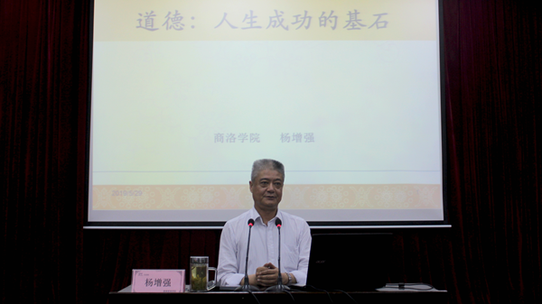 本期道德講堂由唱道德歌曲、誦道德經(jīng)典、學(xué)道德模范、聽道德報(bào)告四個環(huán)節(jié)組成。活動在悠揚(yáng)的《公民道德歌》中拉開帷幕,隨后,在健康管理學(xué)院教師李夢姣的帶領(lǐng)下,社會1801班全體學(xué)生誦讀了《弟子規(guī)·信》中的片段,深情詮釋了道德經(jīng)典的魅力,贏得了陣陣掌聲。接著,現(xiàn)場人員共同觀看了陜西省第五屆道德模范、孝老愛親類“中國好人”唐偉麗的感人事跡短片?;顒舆€邀請我校圖書館館長楊增強(qiáng)教授以“道德:人生成功的基石”為題作了專題報(bào)告,報(bào)告指出,當(dāng)代大學(xué)生應(yīng)牢固樹立社會主義核心價(jià)值觀,堅(jiān)持誠實(shí)守信的人生信條,把誠信融入到學(xué)習(xí)生活的方方面面。