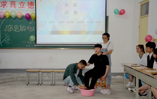 班會(huì)中,師生以小品《洗腳》、朗誦《常懷一顆感恩的心》、“我想對(duì)你說(shuō)”“說(shuō)出你的愛(ài)”等多種形式詮釋了親情和師恩的涵義,教育引導(dǎo)大家要知恩、感恩,以實(shí)際行動(dòng)回報(bào)關(guān)心支持自己的父母、老師和學(xué)校。中國(guó)好人、陜西省道德模范學(xué)生唐偉麗傾情講述了自己的感人事跡,分享了自己的成長(zhǎng)感悟,鼓勵(lì)大家珍惜大好年華、努力學(xué)習(xí)進(jìn)步。