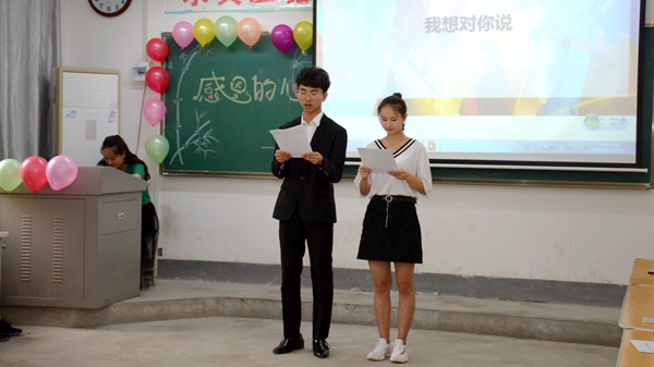 龍治剛向?qū)W生們分享了汪國(guó)真的詩(shī)歌《感謝》,回顧了自己的大學(xué)經(jīng)歷,他講到,“感恩”這個(gè)主題是我們新時(shí)代要倡導(dǎo)和弘揚(yáng)的正能量,此次班會(huì)的每個(gè)環(huán)節(jié)都體現(xiàn)了我們對(duì)優(yōu)秀傳統(tǒng)文化的傳承和發(fā)揚(yáng),我們要懂得感恩,感恩時(shí)代、感恩國(guó)家、感恩父母、感恩同學(xué),更要感謝每一次的成長(zhǎng)和進(jìn)步。他就大學(xué)生如何有價(jià)值的度過(guò)四年求學(xué)時(shí)光提出了四條準(zhǔn)則:一年級(jí)走進(jìn)大學(xué)、認(rèn)識(shí)自我、鎖定目標(biāo);二年級(jí)適應(yīng)大學(xué)、發(fā)現(xiàn)自我、學(xué)會(huì)學(xué)習(xí);三年級(jí)理解大學(xué)、升華自我、全面發(fā)展;四年級(jí)眷戀大學(xué)、超越自我、服務(wù)社會(huì)。他希望學(xué)生們能利用好學(xué)校的師資平臺(tái),在學(xué)習(xí)中勤思考、常研究,充分領(lǐng)略科學(xué)知識(shí)的魅力,以實(shí)際行動(dòng)向自己、家人、學(xué)校、國(guó)家交上一份滿意的答卷,用滿滿收獲回饋關(guān)愛(ài)自己的朋友和師長(zhǎng)。