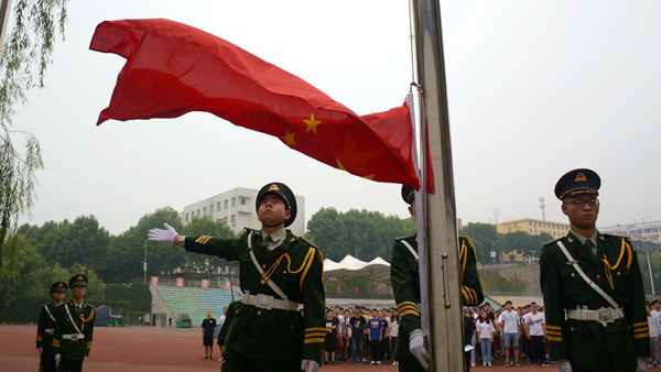 在雄壯的國(guó)歌聲中,建工學(xué)院師生整齊列隊(duì),舉行新學(xué)期第一次升國(guó)旗儀式,學(xué)生代表李斌以《新學(xué)期,新開始,新征程》為題作國(guó)旗下演講。