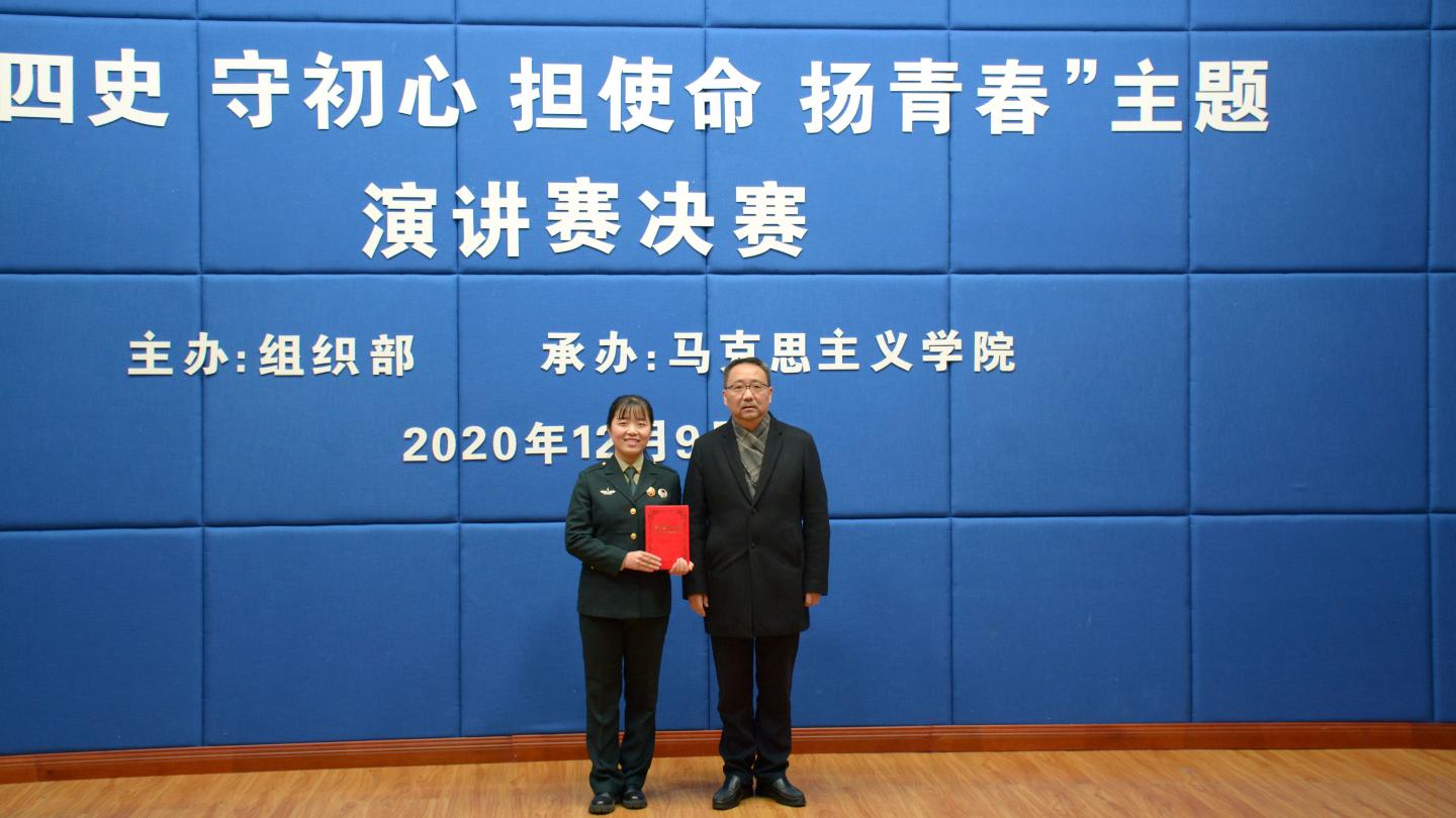 參加決賽的14名選手來(lái)自于10個(gè)二級(jí)學(xué)院,歷經(jīng)初賽、復(fù)賽的層層選拔。比賽中,選手們用慷慨激揚(yáng)、情真意切的演講,闡述自己對(duì)“四史”的理解,抒發(fā)對(duì)祖國(guó)和黨的赤誠(chéng)之心,展現(xiàn)了我校學(xué)子濃厚的家國(guó)情懷,其中,來(lái)自經(jīng)管學(xué)院的學(xué)生申怡琳身著戎裝,以《為祖國(guó)而戰(zhàn)》為題,向師生們分享了自己的參軍感悟,呼吁新時(shí)代大學(xué)生勇?lián)姑?、奮勇向前,贏得評(píng)委一致好評(píng),最終榮獲一等獎(jiǎng)。建工學(xué)院黨一石及經(jīng)管學(xué)院米和榮獲二等獎(jiǎng),人文學(xué)院陶亮、藝術(shù)學(xué)院王儀、健康學(xué)院馬瀅榮獲三等獎(jiǎng),肖佳月、薛顏澤、夏玨、劉亞楠、楊政、劉垚、張嘉欣、馬菲菲八位同學(xué)榮獲優(yōu)秀獎(jiǎng)。
