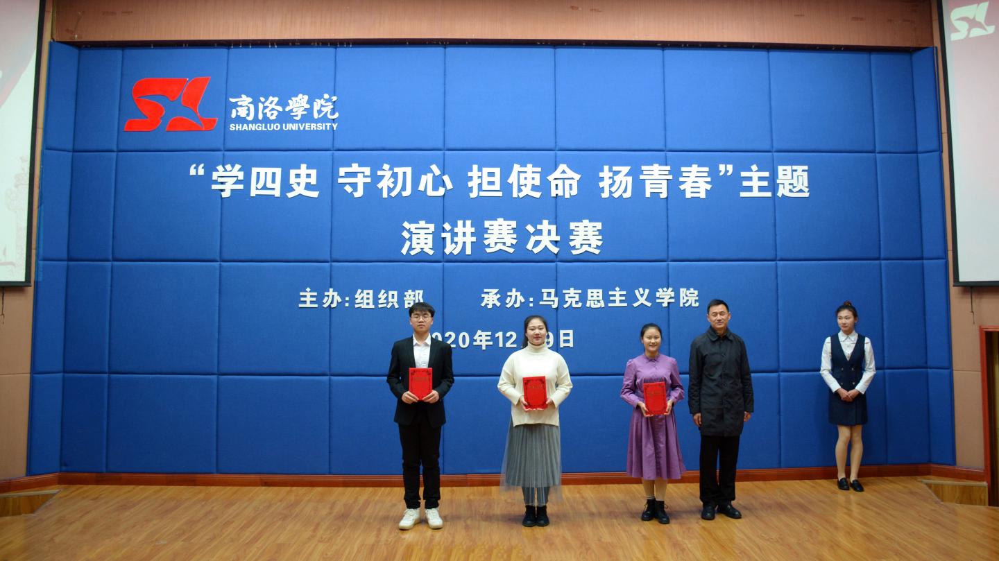為深入貫徹習(xí)近平總書記關(guān)于深入學(xué)習(xí)黨史、新中國(guó)史、改革開放史、社會(huì)主義發(fā)展史的重要指示精神,引導(dǎo)師生知史愛黨、知史愛國(guó),以實(shí)際行動(dòng)迎接建黨100周年,12月9日,由校組織部主辦,馬克思主義學(xué)院承辦的“學(xué)四史、守初心、擔(dān)使命、揚(yáng)青春”主題演講賽決賽在圖書館二樓報(bào)告廳舉辦。校黨委書記龍治剛、校長(zhǎng)范新會(huì)、黨委副書記劉勇出席并為獲獎(jiǎng)選手頒發(fā)榮譽(yù)證書,有關(guān)部門負(fù)責(zé)人、各二級(jí)學(xué)院師生代表共200余人觀看了比賽。