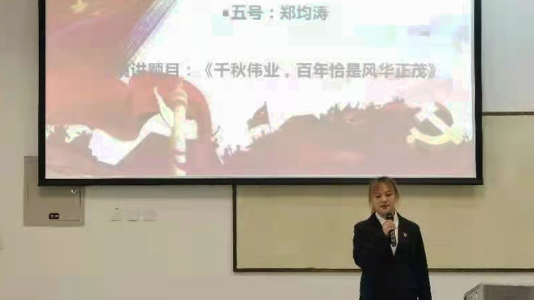 比賽中,9名參賽通過精彩的演講重溫黨的光輝歷史、歌頌黨的豐功偉績,傳遞新時(shí)代青年對黨的忠誠和對未來的無限憧憬,他們富有感染力的演講深深打動(dòng)了每一位評委和在場的觀眾,贏得了陣陣掌聲。期間,全體人員起立共唱《我和我的祖國》,用優(yōu)美的歌聲表達(dá)對祖國的無限熱愛之情,并重溫入黨誓詞,表達(dá)一心向黨、永遠(yuǎn)跟黨走的堅(jiān)定決心。