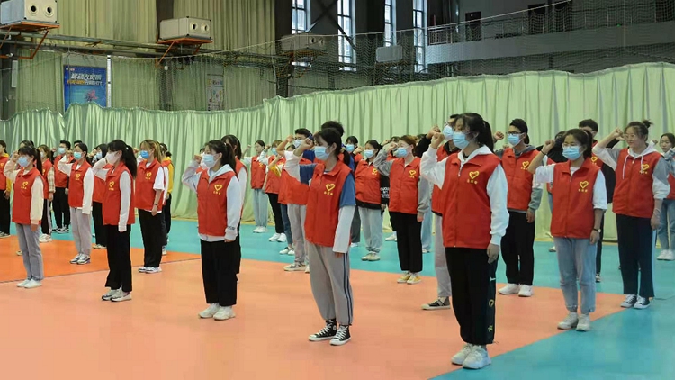 在熱烈的掌聲中,李丹峰宣布十四運會排球項目(商洛賽區(qū))賽會志愿者出征。