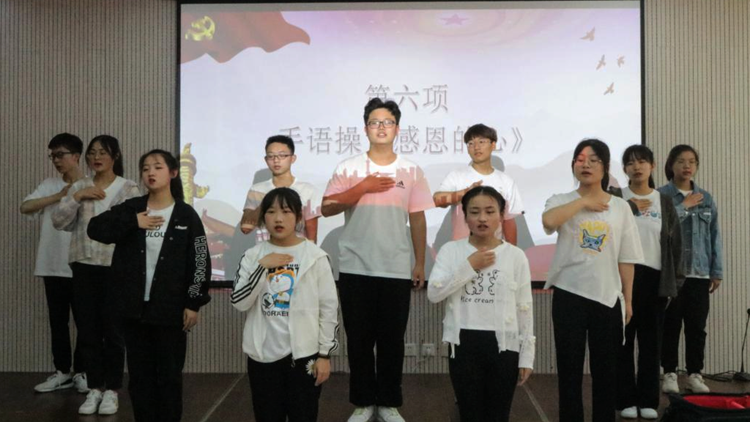活動(dòng)期間,師生們還集體觀看學(xué)習(xí)了“回顧黨史悟初心,感念師恩頌真情”紅色視頻。四位學(xué)生用深情激昂的配樂(lè)詩(shī)朗誦《感恩有您》,帶領(lǐng)大家重溫中國(guó)共產(chǎn)黨不屈不撓艱苦奮斗的光輝歷程。感恩手語(yǔ)操使全場(chǎng)散發(fā)著愛(ài)的芬芳,流淌著愛(ài)的旋律?;顒?dòng)最后,學(xué)院向全體與會(huì)同學(xué)發(fā)放了感恩主題書簽,使廣大學(xué)子時(shí)時(shí)感黨恩,刻刻念師情,牢記責(zé)任和擔(dān)當(dāng)。